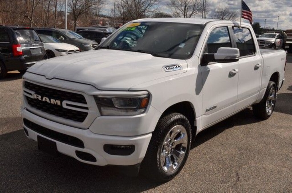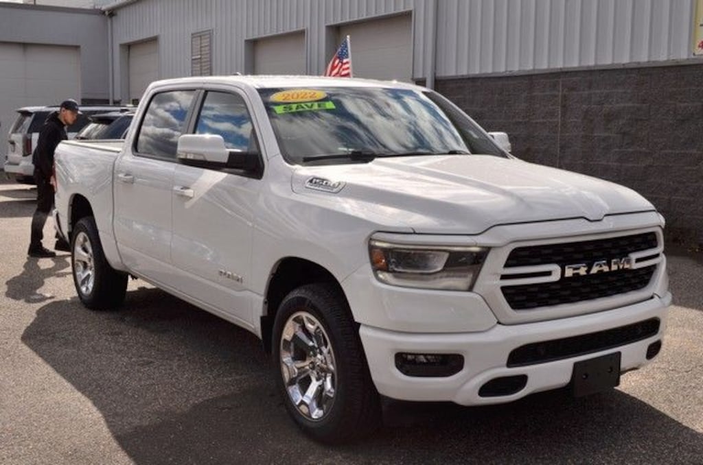 Bright White Clearcoat 2022 Ram 1500 Big Horn/Lone Star 4WD 8-Speed Automatic HEMI 5.7L V8 Multi Displacement VVT CLEAN CARFAX, ONE OWNER, REMAINDER OF FACTORY WARRANTY, RECENT METRO CJD TRADE IN, 115V Auxiliary Power Outlet, 115V Auxiliary Rear Power Outlet, 2nd Row In Floor Storage Bins, 3 Rear Seat Head Restraints, 4 Way Front Headrests, 400W Inverter, 4G LTE Wi-Fi Hot Spot, 8.4" Touchscreen Display, Air Conditioning ATC w/Dual Zone Control, All Plant-Installed Decals, All R1 High Radios, All Radio Equipped Vehicles, Apple CarPlay, Auto-Dimming Exterior Driver Mirror, Auto-Dimming Rear-View Mirror, Big Horn Badge, Big Horn Level 2 Equipment Group, Black Exterior Mirrors, Black Interior Accents, Black Premium Power Mirrors, Bluetooth Handsfree Phone & Audio, Body Color Exterior Mirrors, Body Color Front Bumper, Body Color Premium Power Mirrors, Body Color Rear Bumper w/Step Pads, Bridgestone Brand Tires, Bucket Seats, Class IV Receiver Hitch, Cluster 7.0" TFT Color Display, Connected Travel & Traffic Services, Connectivity - US/Canada, Convex Wide-Angle Mirror Insert, Delete LED Lamp - Floor Console Bin, Deluxe Cloth Bucket Seats, Disassociated Touchscreen Display, Exterior Mirrors Courtesy Lamps, Exterior Mirrors w/Heating Element, Exterior Mirrors w/Supplemental Signals, For Details, Visit DriveUconnect.com, Front LED Fog Lamps, Front Seat Back Map Pockets, Full Length Floor Console, Global Telematics Box Module (TBM), Glove Box Lamp, Google Android Auto, GPS Antenna Input, GPS Navigation, HD Radio, Heated Front Seats, Heated Steering Wheel, Integrated Center Stack Radio, Integrated Voice Command w/Bluetooth, LED Reflector Headlamps, LED Taillamps, Manual Adjust 4-Way Front Passenger Seat, Media Hub w/2 Charge Only USBs, ParkSense Front/Rear Park Assist w/Stop, ParkView Rear Back-Up Camera, Power 2-Way Driver Lumbar Adjust, Power 8-Way Driver Seat, Power Adjustable Pedals, Power-Folding Mirrors, Premium Lighting Group, Quick Order Package 23Z Big Horn, Quick Order Package 27Z Big Horn, Radio: Uconnect 5 Nav w/8.4" Display, Radio: Uconnect 5 W w/8.4" Display, Rear 60/40 Folding Seat, Rear Center Armrest, Rear Dome w/On/Off Switch Lamp, Rear Power Sliding Window, Rear Window Defroster, Remote Start System, Security Alarm, SiriusXM Radio Service, SiriusXM Satellite Radio, SiriusXM w/360L, Speed control, Sport Appearance Package, Sport Decal, Sun Visors w/Illuminated Vanity Mirrors, Universal Garage Door Opener, USB Host Flip.